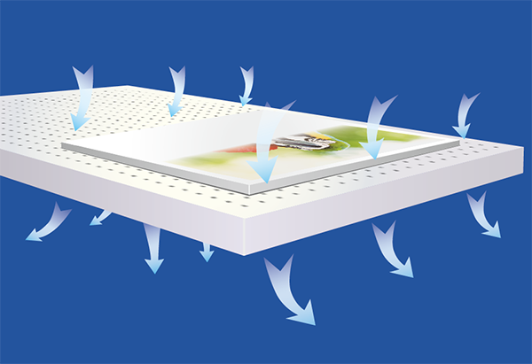 CG1313的吸風(fēng)系統(tǒng)可以將打印底材牢固地吸附在打印平臺表面,即使在雙向打印和多遍(multi-pass)打印時(shí),也可獲得精準(zhǔn)可靠的落點(diǎn)。打印平臺被劃分為兩個(gè)獨(dú)立控制的區(qū)域,針對小尺寸的底材,您可以只使用平臺的一部分進(jìn)行打印,以取得良好的吸風(fēng)效果。吹風(fēng)功能可在打印結(jié)束后,幫您頂起大型、厚型、或者重型底材,使您可輕松迅速地將底材從平臺上取下。