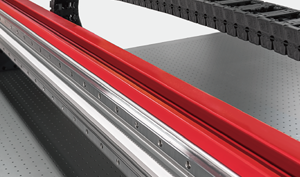 安裝有兩個(gè)導(dǎo)軌、光柵尺和伺服電機(jī)的穩(wěn)固的橫梁可以確保噴頭小車的精準(zhǔn)運(yùn)動(dòng)和完美定位。 |
