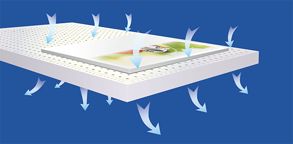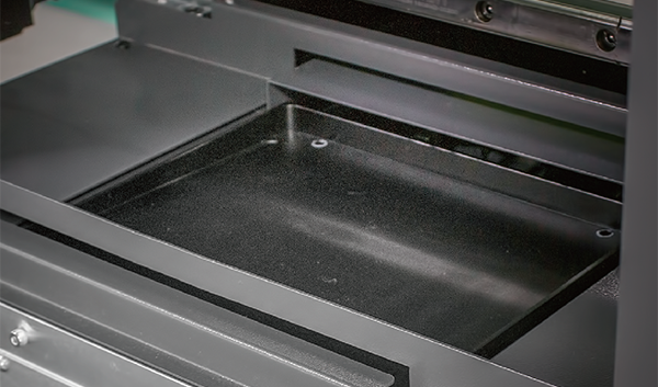 TA2521打印平臺(tái)桌面自帶長(zhǎng)、寬兩個(gè)方向的量尺,可顯示底材的準(zhǔn)確尺寸并幫助您定位打印原點(diǎn),避免繁瑣費(fèi)時(shí)的校準(zhǔn)工作。均勻分布的吸風(fēng)孔在四個(gè)風(fēng)扇的配合下將打印底材平整、牢固地吸附于打印平臺(tái)表面,即使在雙向打印和多遍(multi-pass)打印時(shí),也可獲得準(zhǔn)確可靠的落點(diǎn),確保底材不刮蹭噴頭噴嘴,實(shí)現(xiàn)高質(zhì)量的打印效果。