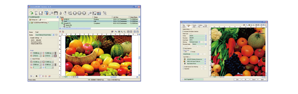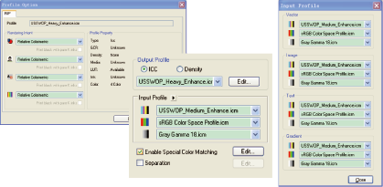 ColorPRINT 軟件支持ICC 顏色管理流程。它可以幫助用戶輕松獲得準(zhǔn)確的色彩復(fù)現(xiàn)。輸入不同的ICC 描述文件和色空間轉(zhuǎn)換類型可以指派給不同類型的對(duì)象,如矢量、漸變、文本和圖像。無論是什么文件,打印的顏色將會(huì)完美匹配。ColorPRINT 軟件也支持各色通道墨水的ICC 描述文件。