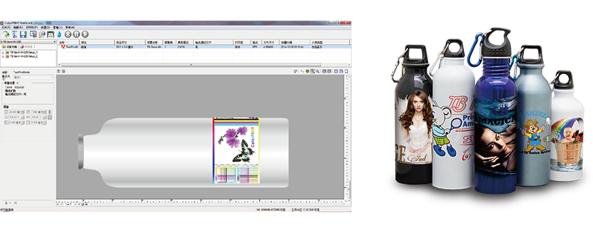 無論是圓柱狀瓶子還是圓錐狀杯子,ColorPRINT Bottle/ Cup 軟件都能夠精確地控制墨量的多少和下墨的位置,確保顏色一致的圖案和高質(zhì)量的打印效果。瓶子/杯子模板功能允許用戶通過輸入瓶子/杯子的直徑、高度、UV燈寬度和UV燈起始位置來定義圖像的打印位置。另外,用戶可根據(jù)自己的喜好來設(shè)置瓶子/杯子的打印顏色和打印質(zhì)量。此軟件還提供直觀的2D/3D作業(yè)預(yù)覽。