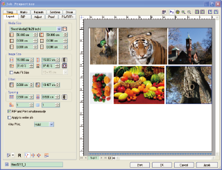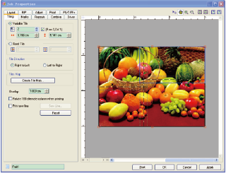 ColorPRINT 可檢測(cè)打印機(jī)可印刷的尺寸。如果發(fā)送的作業(yè)尺寸大于可印刷的尺寸,軟件將把輸出文件自動(dòng)分解成兩個(gè)或多個(gè)拼貼塊進(jìn)行打印。手動(dòng)拼貼功能可讓用戶實(shí)現(xiàn)選擇打印圖像的某一部分而不用處理整個(gè)圖像。此功能非常靈活、實(shí)用,若遇到打印質(zhì)量有瑕疵的圖片,其高質(zhì)量打印部分仍然可用。此功能也給用戶提供了更靈活的生產(chǎn)選擇。