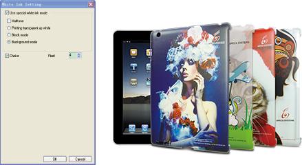 白墨功能可以應(yīng)用于透明底材背打光的疊印印刷,彩色底材的全打白,非圖像區(qū)域的白色填充,或者打印白色作為專色。自動(dòng)白墨收縮功能確保白墨打印不超出 CMYK 墨水打印區(qū)域而露出白邊。